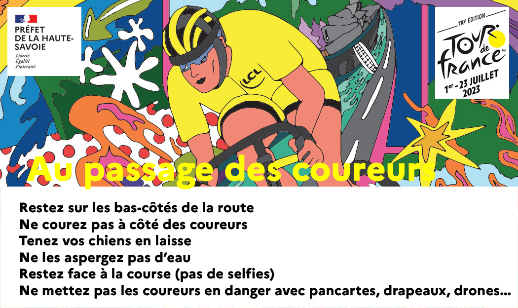Quelques conseils de prudence en tant que spectateur du Tour de France, édités par la Préfecture de Haute-Savoie :