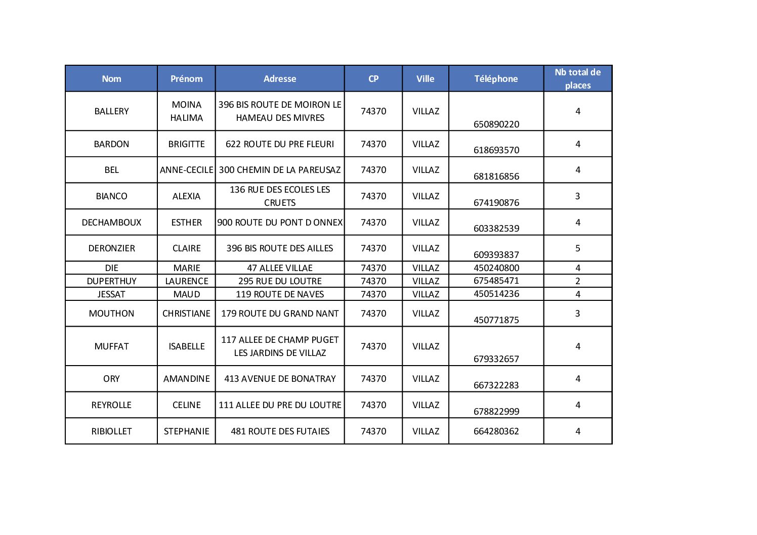 Téléchargez la liste des assistantes maternelles domiciliées sur la commune, en activité au 02 janvier 2026.
