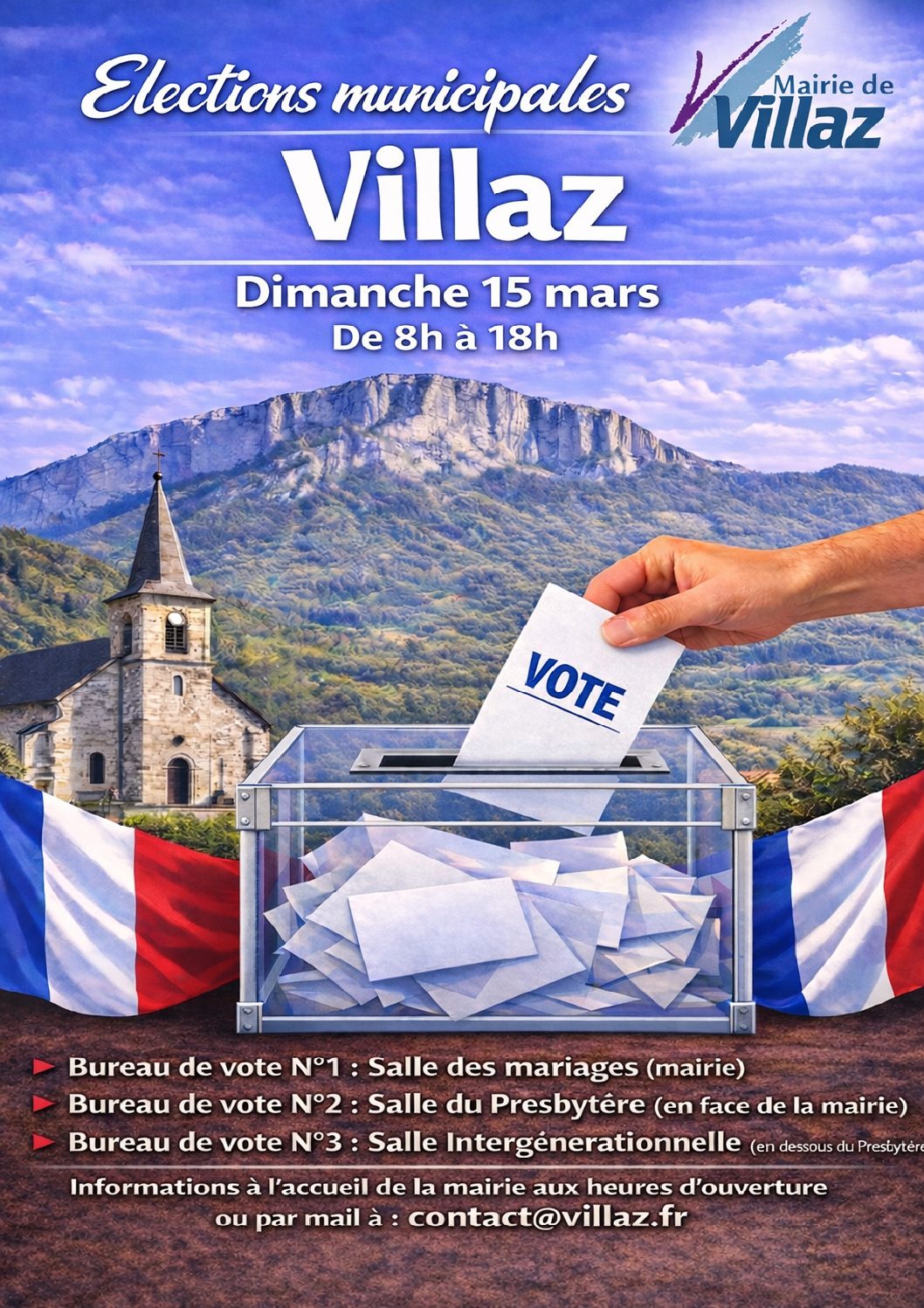 Si vous avez un doute sur votre lieu de vote : envoyez un mail à contact@villaz.fr